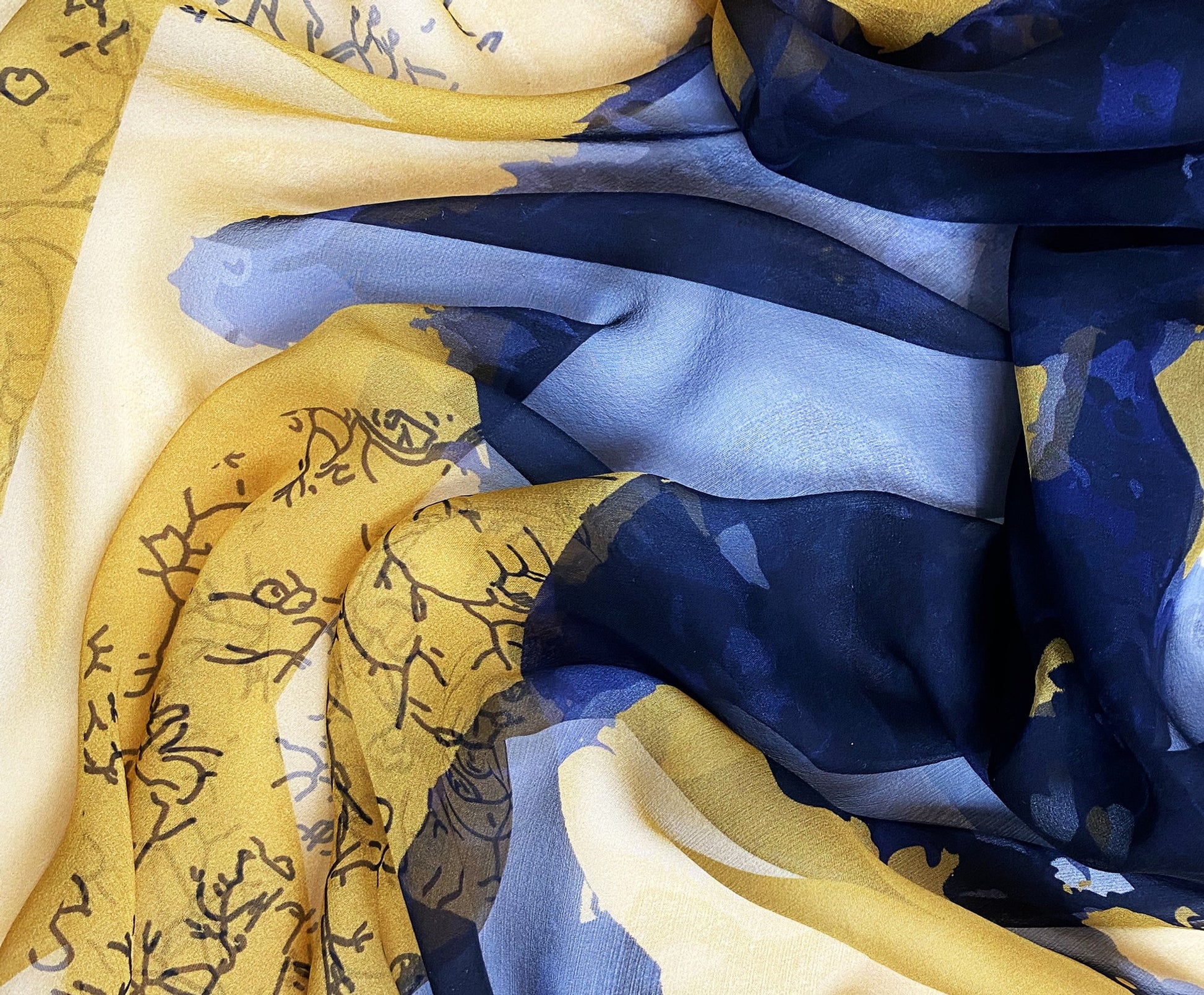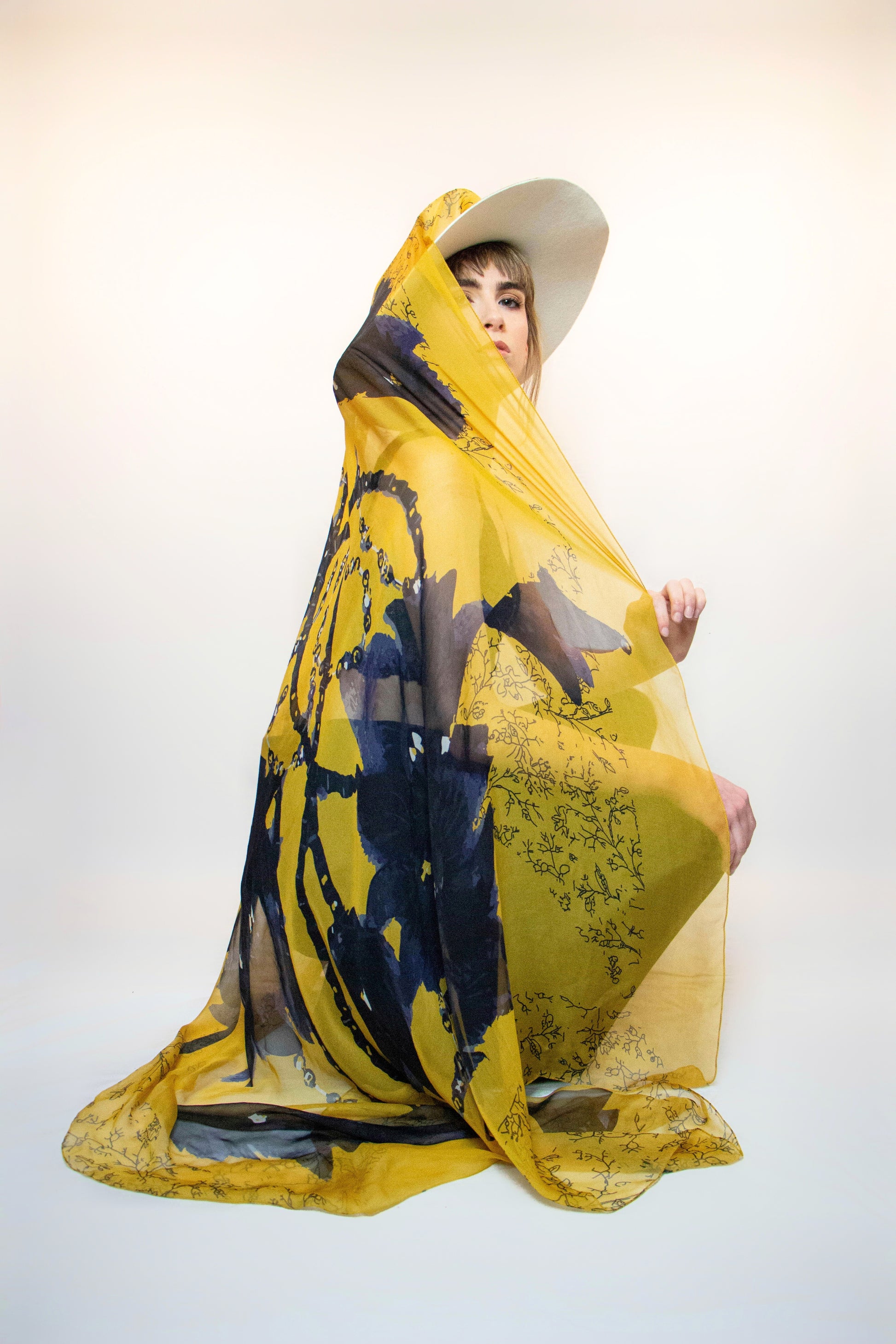 Carré mousseline de soie 138cm x 138cm.
