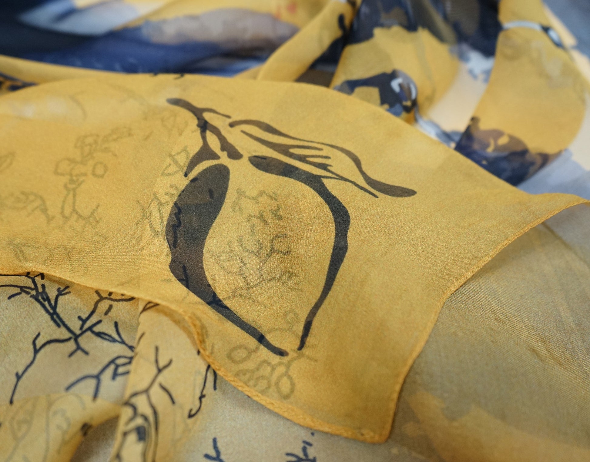 100 % soie. Nettoyage à sec uniquement. Repasser sans vapeur à une température maximale de 110° avec un tissu en coton léger entre le fer et le foulard. Ne pas sécher en machine. Ne pas utiliser d'eau de Javel.