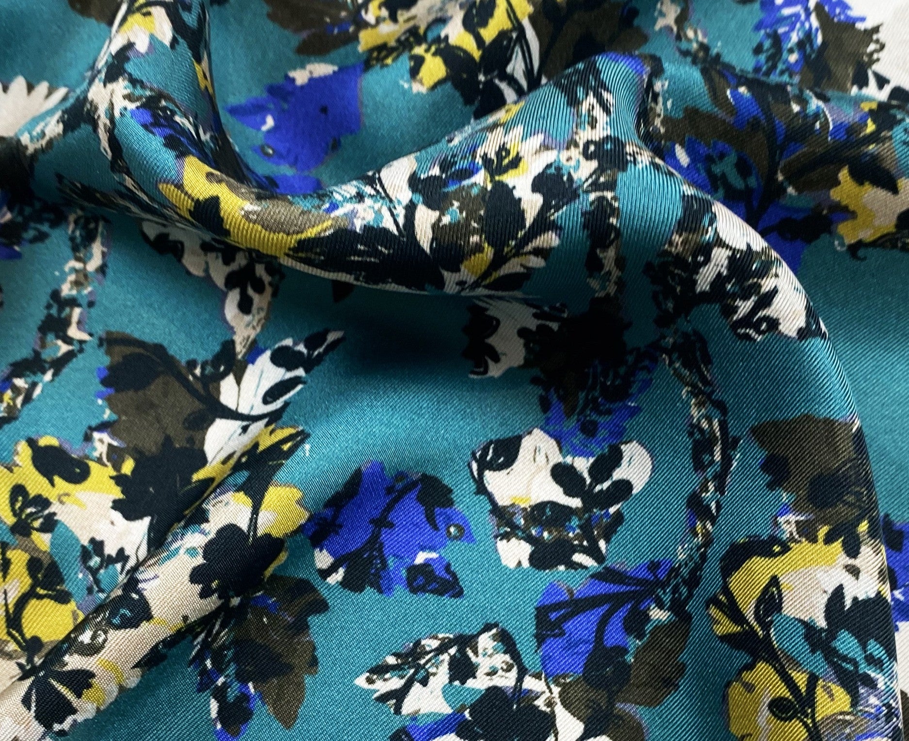 100 % soie. Nettoyage à sec uniquement. Repasser sans vapeur à une température maximale de 110° avec un tissu en coton léger entre le fer et le foulard. Ne pas sécher en machine. Ne pas utiliser d'eau de Javel.