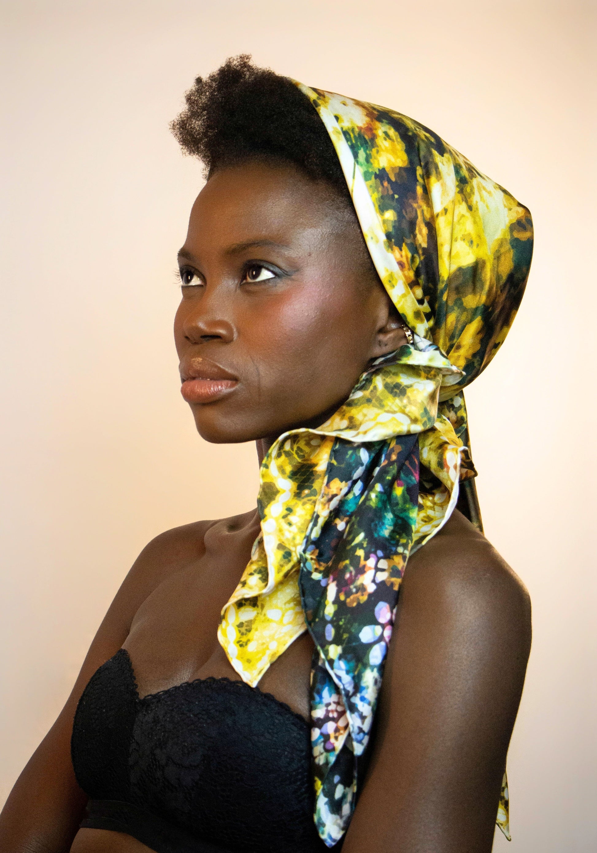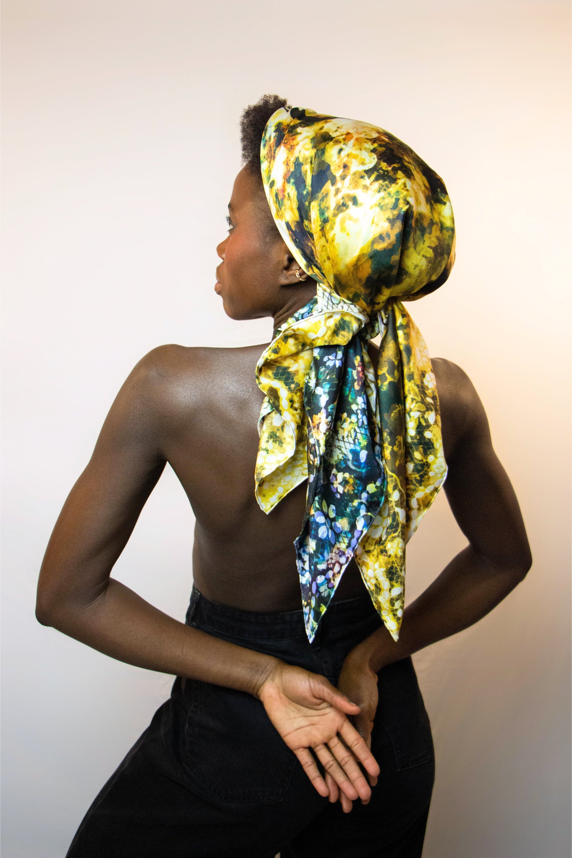 Ce qui rend le carré Baçira unique : flamboyant et lumineux, il est idéal pour compléter un look audacieux...ou ajouter une touche d'extravagance à votre tenue.