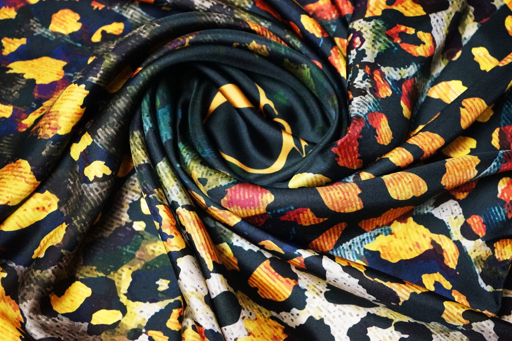 100 % soie. Nettoyage à sec uniquement. Repasser sans vapeur à une température maximale de 110° avec un tissu en coton léger entre le fer et le foulard. Ne pas sécher en machine. Ne pas utiliser d'eau de Javel.